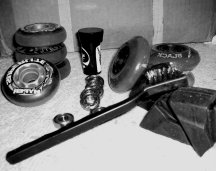 WHEELS It is a good idea to check them out each time you go out skating, but not many of us do. Check the instructions that came with your wheels and they will have a suggested maintenance schedule and instructions for rotating them as well. To maximize your wheel's surface, improve your skating performance, and to save money, you should check your wheels after a few skates to see how your wheels are wearing. Depending on the quality of your wheels, the hardness of them, your skating style, how often you skate, and your skating surfaces will determine how often you need to rotate your wheels to keep the surface even. The standard method for wheel rotation is to turn each wheel over so what was the inside edge, is now facing out. Usually you will be switching the side with writing to the inside (your first rotation). |